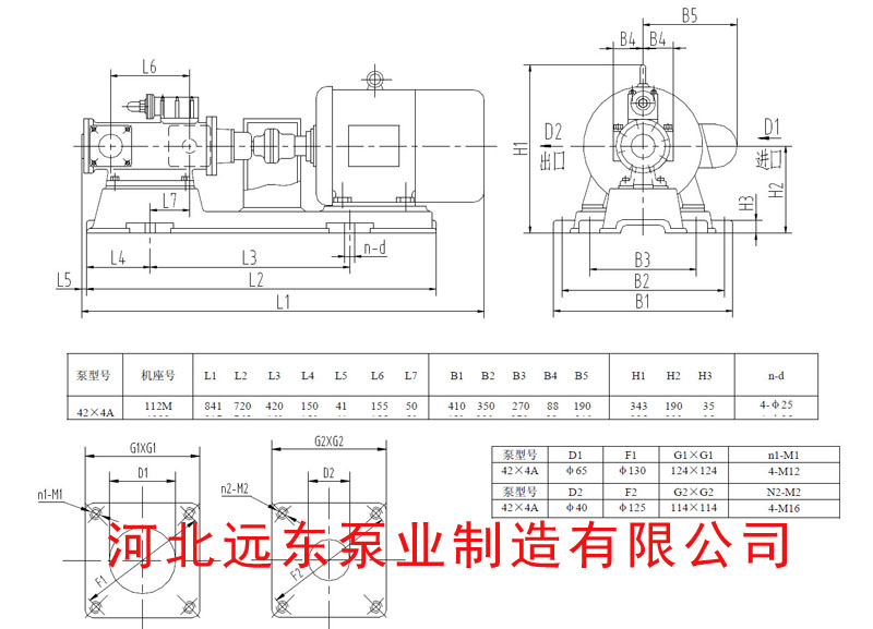 | 3GR42*4AW21三螺(luó)杆泵配112M底(dǐ)座安裝尺(chi)寸圖-遠東(dōng)泵業 |