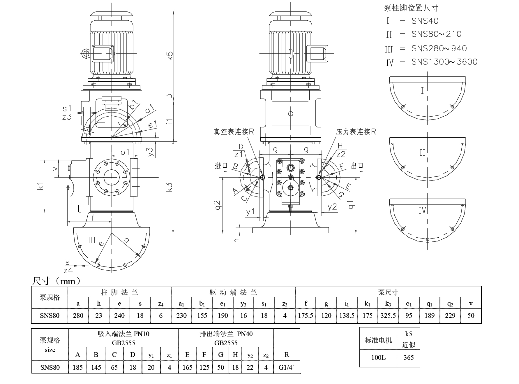 SNS80R36U12.1W21立(li)式三螺杆泵(bèng)尺寸圖 ,該泵(beng)配2.2kw電機,電機(ji)轉速為1450rpm,該泵(bèng)可以做機床(chuáng)潤滑油泵,旋(xuán)轉設備潤滑(huá)油泵.